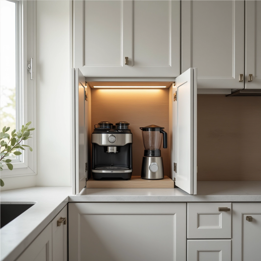 Tidy up countertops by tucking away blenders, coffee makers, and toasters while keeping them accessible.
