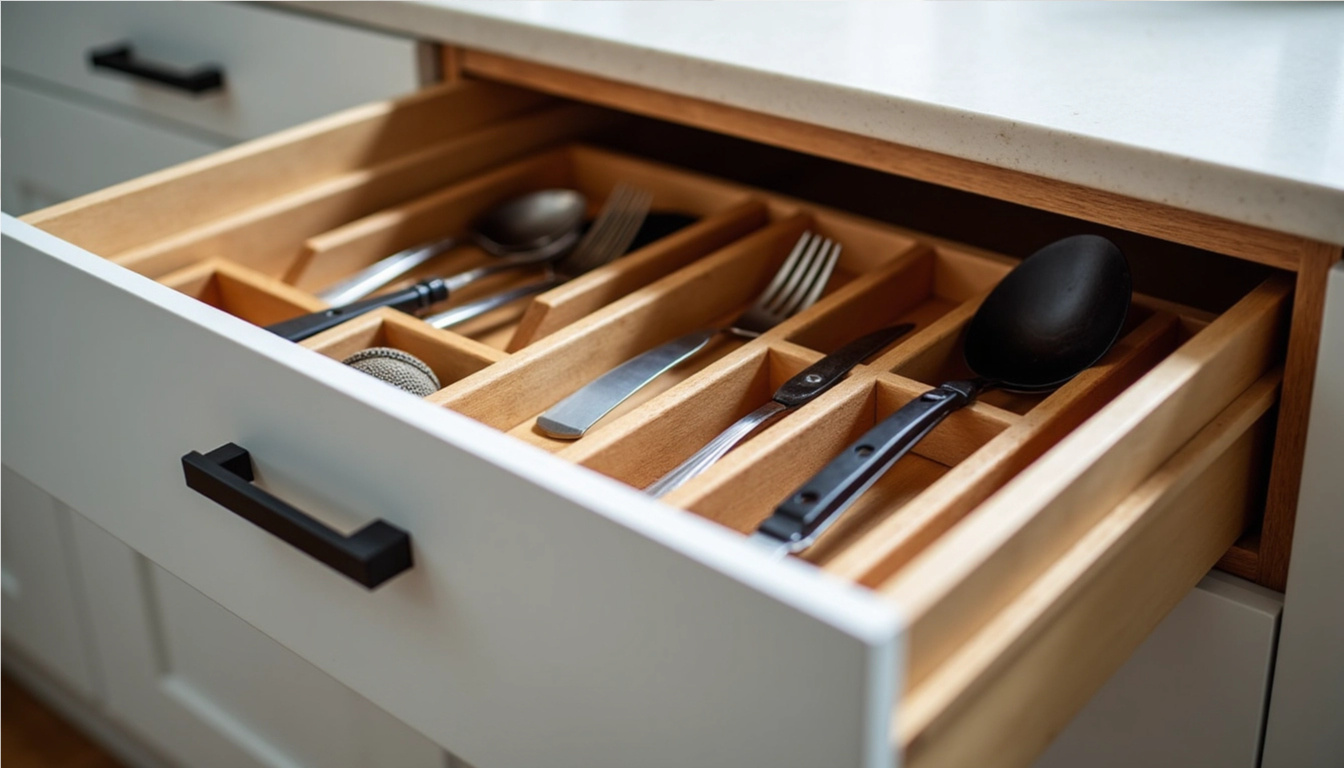 Keep your silverware, utensils, and tools neat and separated with built-in dividers. Customizable for sizes & contents.