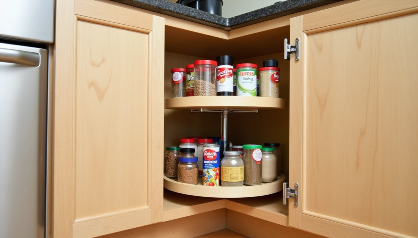 Perfect for corner cabinets. These rotating trays make spices, oils, and dry goods instantly accessible.