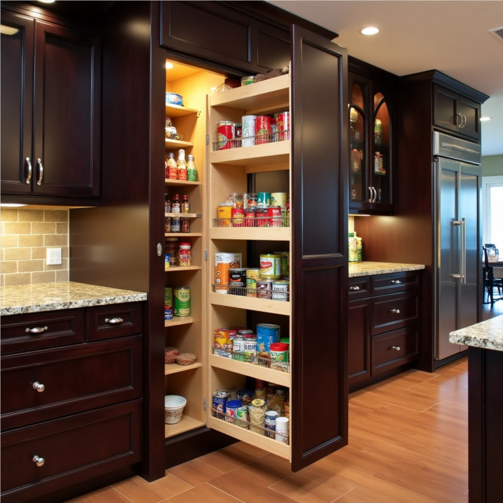 Tall sliding cabinets that bring pantry items out front and center—no wasted vertical space.