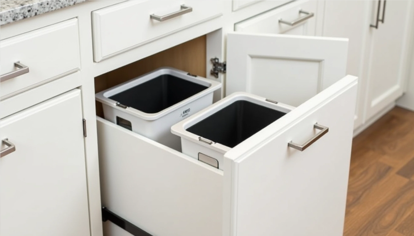 Hide away your bins with smooth pull-out drawers for a cleaner, more organized kitchen.