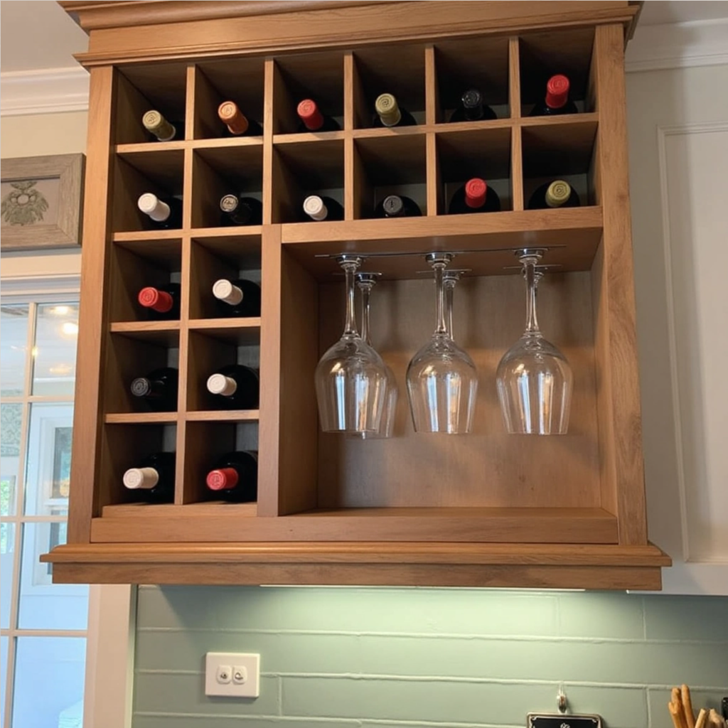 Elegant, functional upper cabinet storage for your favorite bottles and glasses. Adds elegance to your kitchen.